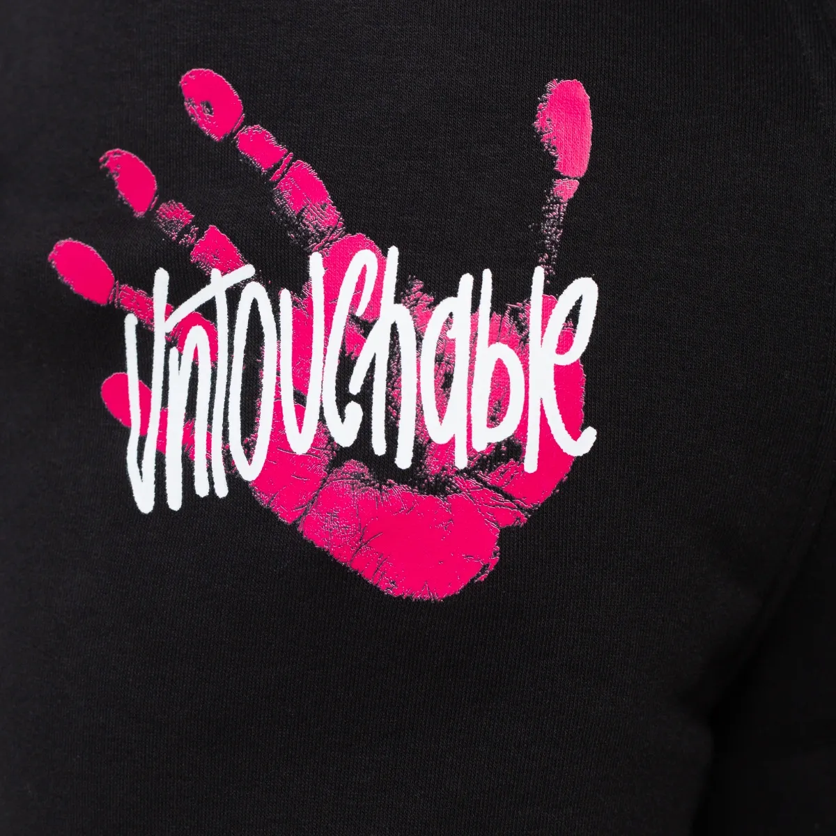 Imprimare grafica de mana din spate “UNTOUCHABLE” roz neon