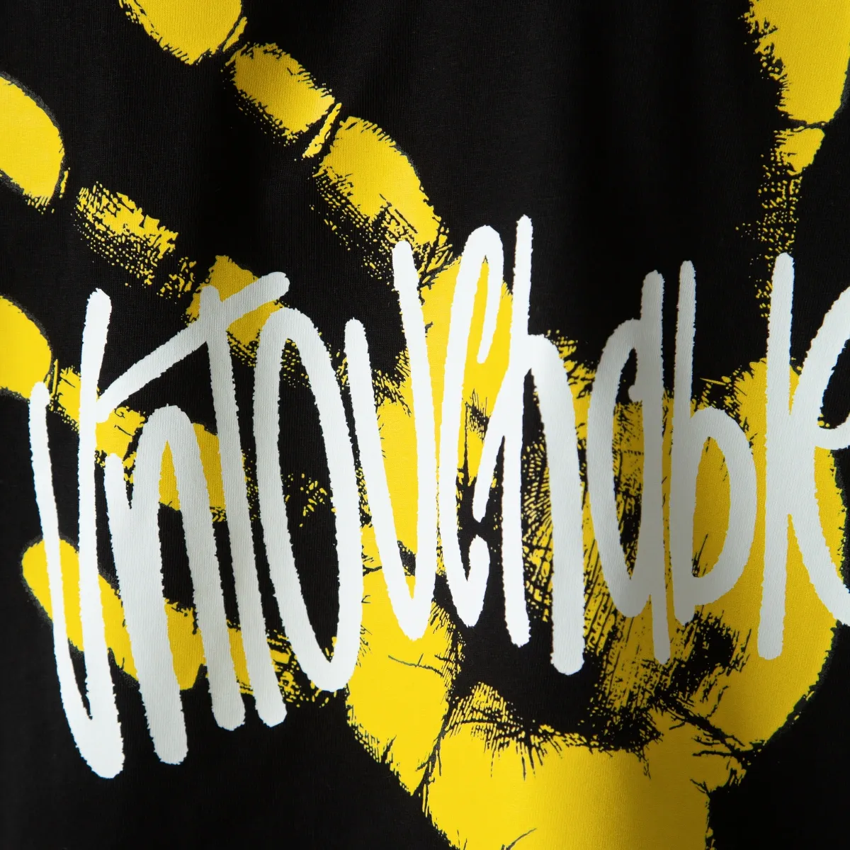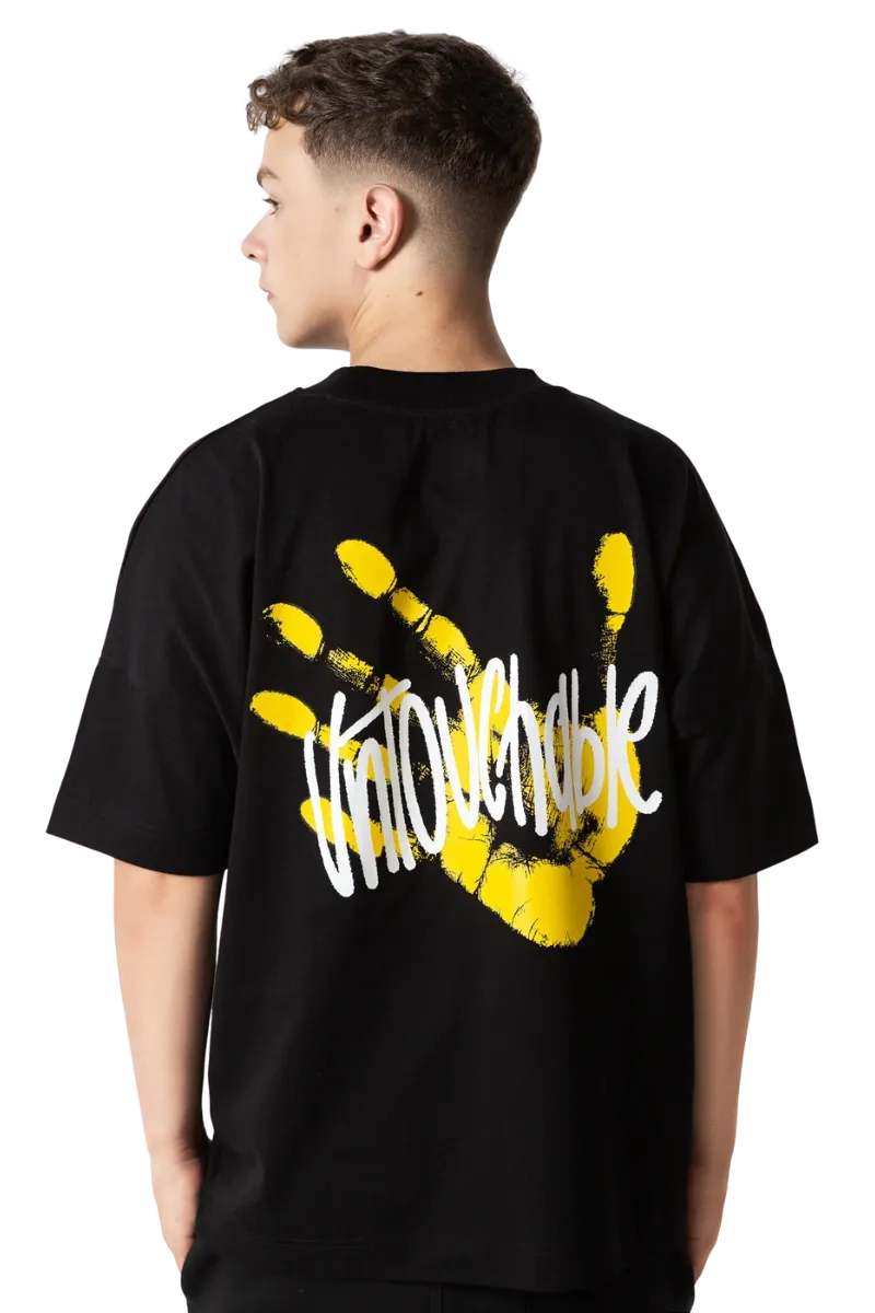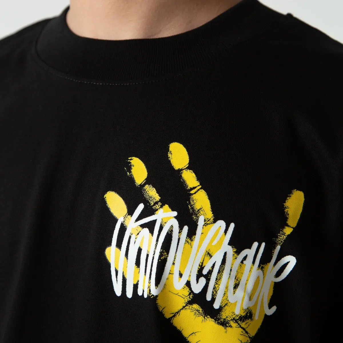 - Imprimare grafica pe spate a mainii “UNTOUCHABLE” galben