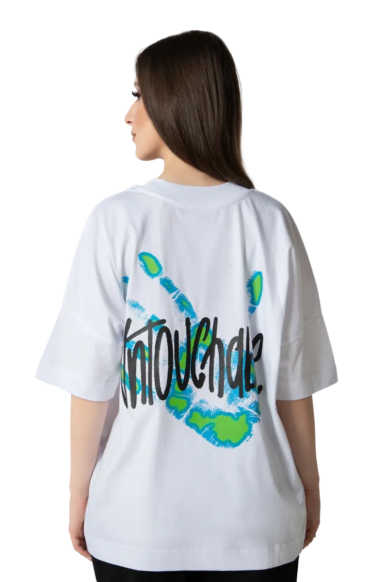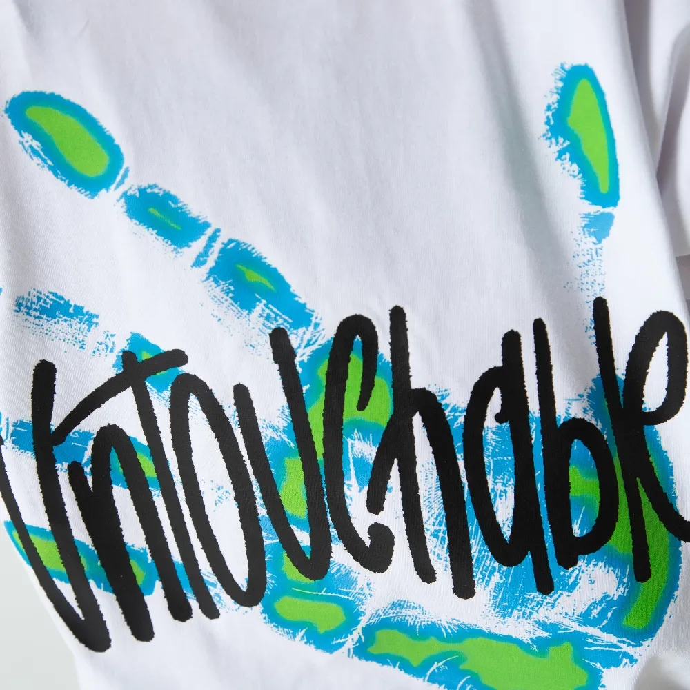 - Imprimare grafica pe spate a mainii “UNTOUCHABLE” neon